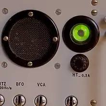 - un œil cathodique, appelé encore œil magique[3], sur les récepteurs grand public et certains récepteurs de trafic (exemple : récepteur A.M.E. 7G1480[4]),