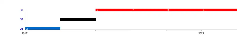 | 2022-2023 | 2e | 67 | 30 | 21 | 4 | 5 | 61 | 27 | +34 | Compétition annulée[n 2] | |