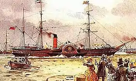 Le SMS Barbarossa est construit à l'origine sous le nom de Britannia pour la ligne anglaise Cunard en tant que navire de passagers et de courrier, mais finit à sa carrière en tant que navire de guerre pour la marine prussienne. C'est un bateau à aubes avec un gréement de voile supplémentaire.