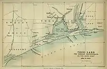 La SMS Sophie quitte la Méditerranée à la fin de l'année et arrive dans l'actuel Togo fin janvier 1884. Tout d'abord, le commandant et trois officiers visitent les ruines des fortifications brandebourgeoises du Fort Groß Friedrichsburg à partir de 1693. Des croquis des vestiges existants du bâtiment sont réalisés et six autres canons sont trouvés. L'un d'entre eux est embarqué et ensuite exposé à l'Arsenal de Berlin[5]. Après cela, le commandant négocie avec les chefs locaux pour améliorer le travail des comptoirs allemands là-bas. Comme tous les chefs n'ont pas participé aux négociations et que certains sont redevenus immédiatement hostiles aux Allemands, la Sophie débarque un détachement et attaque un village où quinze chefs conférèrent. Trois d'entre eux sont retenus à bord, les autres sont relâchés après avoir solennellement promis une bonne conduite envers les Allemands. Les trois chefs sont emmenés en Empire allemand, montrés à Berlin, Hambourg et Kiel, puis renvoyés au Togo après un mois sur la Möwe[5]. Le gouverneur britannique de la Côte-de-l'Or apparaît sur une corvette et met en doute la légalité de l'action allemande. Le commandant du Sophie, le capitaine de corvette Wilhelm Stubenrauch, refuse d'en discuter et les Britanniques se retirent à nouveau. De l'île de São Vicente, le commandant fait un rapport sur son action à son pays. Il est félicité et reçoit l'ordre de revenir. Le 30 mars 1884, la Sophie retourne à Wilhelmshaven et subit immédiatement des réparations de base[4].