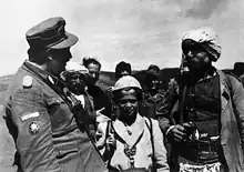 Des soldats de la division Skanderberg discutant avec des membres du SS-Polizei Regiment Sandschak. | |