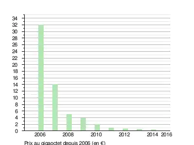 Le gigaoctet pour 1 € a été atteint en France début , dans le cadre d'une offre promotionnelle restreinte. La baisse s'est poursuivie : en , le prix moyen a atteint ±0,7 €/Go, puis ±0,5 €/Go en [réf. nécessaire], puis ±0,33 €/Go[7] en sur des modèles de 1 To en TLC.