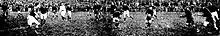 Championnat de France de rugby 1930, balle chez les agenais, action des lignes arrières (21 joueurs de champ).