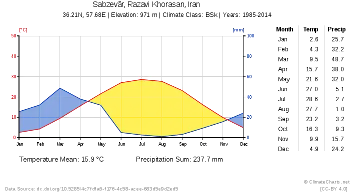 Le nom de la ville au Moyen Âge était Beyhaq. Elle est à environ 220 kilomètres à l’ouest de Machhad, la capitale provinciale.