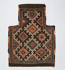 Chez le peuple nomade Bakhtiaris, comme chez nombreux peuples moyen-orientaux, le sel a aussi une symbolique et permet d'éloigner le mauvais œil : raison pour laquelle le sac qui le contient est orné de décorations géométriques, du boteh[1] à fleurs et des figuratives zoomorphes, comme le chien en course. Ces décorations sont des claires représentations symboliques de l'artisanat tribal du Moyen-Orient. Le dos du sac est généralement travaillé à kilim et, pour en renforcer la base, on utilise la technique des nœuds symétriques.