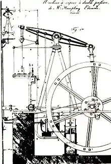 En 1805, un ingénieur de Cornouailles, Arthur Woolf breveta le moteur compound à haute pression utilisant deux cylindres successifs (double compound) pour réaliser l’expansion complète de la vapeur : ce principe a l’avantage de réduire l’amplitude du réchauffement et du refroidissement de chacun des cylindres et donc d’économiser du combustible pour gagner en performance. Jacob Perkins, ingénieur américain montra qu’il était possible de construire une machine à vapeur travaillant à des pressions proches de 35 atmosphères. Sadi Carnot apprécia ce travail mais fit remarquer que ce moteur avait le défaut de ne pas utiliser correctement le principe d’expansion de James Watt[4].