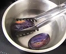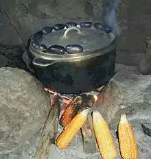 - sur une plaque chauffante ou dans un four, éventuellement saupoudré de sel.
