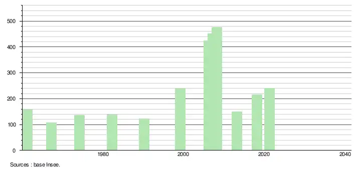 L'évolution du nombre d'habitants est connue à travers les recensements de la population effectués dans la commune depuis 1961, premier recensement postérieur à la départementalisation de 1946. À partir de 2006, les populations légales des communes sont publiées annuellement par l'Insee. Le recensement repose désormais sur une collecte d'information annuelle, concernant successivement tous les territoires communaux au cours d'une période de cinq ans. Pour les communes de moins de 10 000 habitants, une enquête de recensement portant sur toute la population est réalisée tous les cinq ans, les populations légales des années intermédiaires étant quant à elles estimées par interpolation ou extrapolation[25]. Pour la commune, le premier recensement exhaustif entrant dans le cadre du nouveau dispositif a été réalisé en 2008[26].