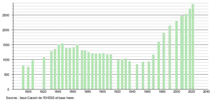 De 1962 à 1999 : population sans doubles comptes ; pour les dates suivantes : population municipale.