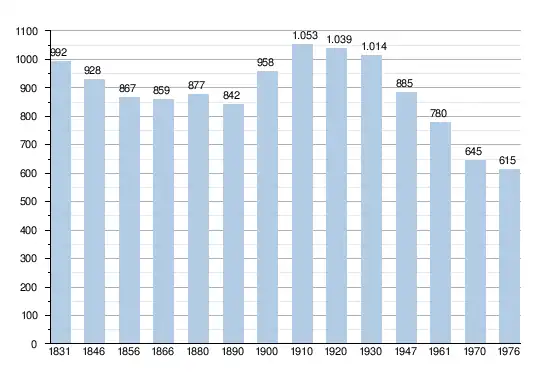 - Sources : INS, Rem. : 1831 jusqu'en 1970 = recensements, 1976 = nombre d'habitants au 31 décembre[3].