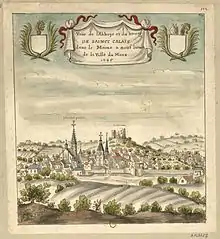 De juin à : la ville est touchée par une terrible épidémie de dysenterie qui décime les deux-tiers de la population. Afin de venir en aide à ses habitants, et selon la légende, la châtelaine de Saint-Calais distribue aux nécessiteux, un brouet de farine et de pommes. De ces ingrédients sommaires, naît « le pâté aux pommes », appelé aujourd'hui « chausson aux pommes ». En souvenir de ce geste, et de la grande procession organisée pour implorer Dieu, la fête du chausson aux pommes est célébrée le premier week-end de septembre depuis presque 400 ans.