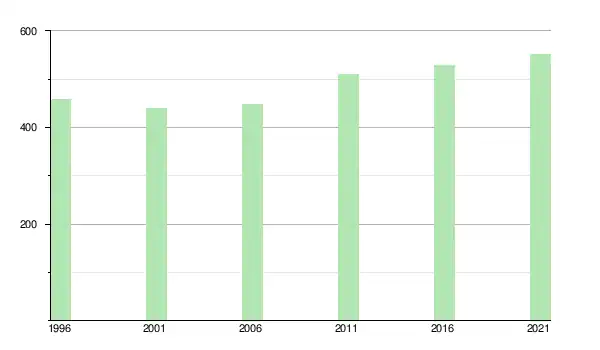 En 2010, la population franchissait le cap des 500 habitants, et atteignait 511 habitants au recensement de 2011, soit une augmentation de plus de 14 % entre 2006 et 2011[11]