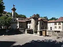 - La tour du Poulet, des XIV, XVe et XVIIIe siècles, est le dernier vestige de l'ancien château fort de Montcarra, bâti par le chevalier Bertrand Carra en 1309. Le château fut incendié par l'archevêque de Vienne en 1402, car la famille des Torchefelon, qui en était propriétaire, se refusa de lui rendre hommage. Ensuite le château fut de la famille des Alleman[32],[33].