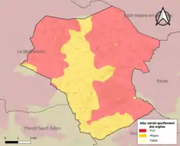 Le retrait-gonflement des sols argileux est susceptible d'engendrer des dommages importants aux bâtiments en cas d’alternance de périodes de sécheresse et de pluie. La totalité de la commune est en aléa moyen ou fort (84,7 % au niveau départemental et 48,5 % au niveau national). Sur les 193 bâtiments dénombrés sur la commune en 2019, 193 sont en aléa moyen ou fort, soit 100 %, à comparer aux 86 % au niveau départemental et 54 % au niveau national. Une cartographie de l'exposition du territoire national au retrait gonflement des sols argileux est disponible sur le site du BRGM[20],[21].