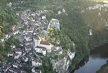 Vue générale du village médiéval surplombant la vallée du Lot. | |||||