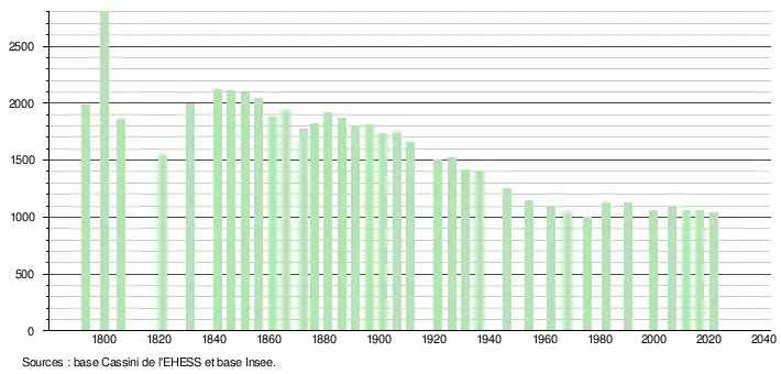En 2018, la commune comptait 506 hommes pour 550 femmes, soit un taux de 52,08 % de femmes, légèrement supérieur au taux départemental (51,59 %).
