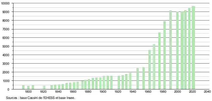 (Sources : Ldh/EHESS/Cassini jusqu'en 1999[34] puis Insee à partir de 2006[35].)
