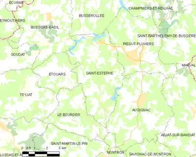 Saint-Estèphe est limitrophe de six autres communes. Au sud, son territoire est distant de moins de 400 mètres de celui de Nontron.