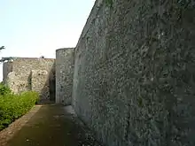 Le 24 novembre 1369, des lettres patentes de Charles V autorisent l'abbaye de Saint-Florent, sous le coup d'une menace immédiate, en raison de l'avance en Anjou des troupes anglaises commandées par le comte de Pembroke et Hugues de Calveley, à se fortifier en urgence[23]. En 1423, les habitants du bourg donnent 1 000 livres à l'abbaye pour restaurer les fortifications. Le jour de la Saint-André 1426, une bande de routiers tente d'escalader les murs et de prendre le bourg, en vain[21].