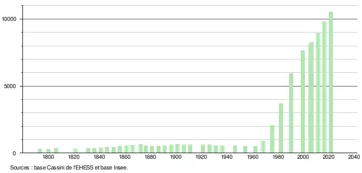 L'évolution du nombre d'habitants est connue à travers les recensements de la population effectués dans la commune depuis 1793. Pour les communes de plus de 10 000 habitants les recensements ont lieu chaque année à la suite d'une enquête par sondage auprès d'un échantillon d'adresses représentant 8 % de leurs logements, contrairement aux autres communes qui ont un recensement réel tous les cinq ans[25],[Note 5].
