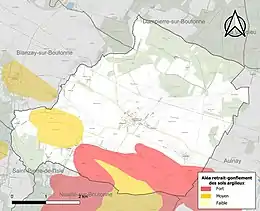 Le retrait-gonflement des sols argileux est susceptible d'engendrer des dommages importants aux bâtiments en cas d’alternance de périodes de sécheresse et de pluie. 24 % de la superficie communale est en aléa moyen ou fort (54,2 % au niveau départemental et 48,5 % au niveau national). Sur les 152 bâtiments dénombrés sur la commune en 2019, 20 sont en aléa moyen ou fort, soit 13 %, à comparer aux 57 % au niveau départemental et 54 % au niveau national. Une cartographie de l'exposition du territoire national au retrait gonflement des sols argileux est disponible sur le site du BRGM[13],[Carte 2].