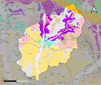 La superficie cadastrale de la commune publiée par l'Insee, qui sert de référence dans toutes les statistiques, est de 19,01 km2[6],[11],[Note 2]. La superficie géographique, issue de la BD Topo, composante du Référentiel à grande échelle produit par l'IGN, est quant à elle de 19,03 km2[3].