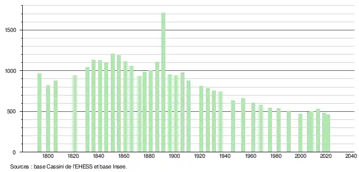 - Fiches Insee - Populations légales de la commune pour les années 2006, 2007, 2008, 2009, 2010, 2011, 2012, 2013, 2014, 2015, 2016, 2017, 2018, 2019, 2020 et 2021.
