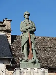 - Le monument aux morts dont le socle comporte la mention fort peu laïque « Pour Dieu [et] la Patrie » avec les dates non moins surprenantes « 1914-1919 ».