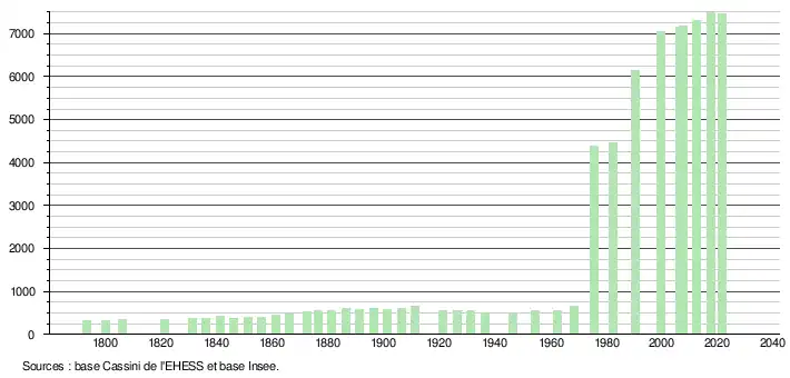 Ainsi, entre les recensements de 1968 et 1975, la commune voit sa population multiplier par sept, passant de 600 habitants à plus de 4000, sept ans plus tard.