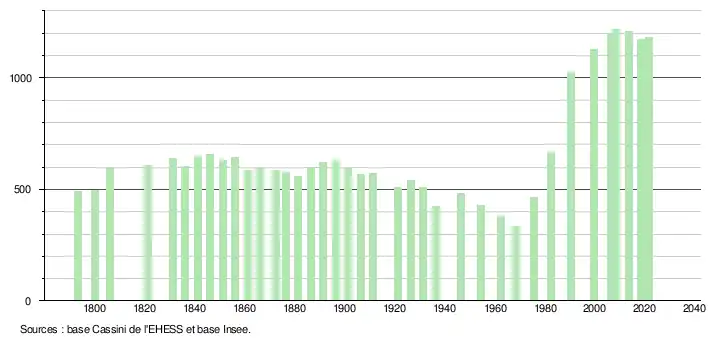 D'après le recensement de 2009 publié le , la population s'accroit en moyenne de 1 % par an, elle présente un solde naturel et un solde migratoire positifs ; 40 % des habitants ont moins de 30 ans, 15 % plus de 60 ans. Depuis 1990, la démographie progresse à un rythme de 1 % par an pour s’établir à 1 251 habitants. Le hameau de Toisley regroupe environ deux tiers de la population. La population se renouvelle fortement ; ainsi, 25 % des recensés en 2006 n’habitaient pas la commune en 1999. D’un recensement à l’autre, la population vieillit mais reste jeune : 40 % des habitants ont moins de 30 ans et 15 % plus de 60 ans.