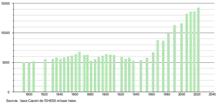 14 264 hab. (2021 en augmentation de 5,84 % par rapport à 2015)