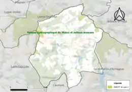 Une ZNIEFF de type 2[Note 1] est recensée sur la commune[12] : le « réseau hydrographique du Midou et milieux annexes » (6 344 ha), couvrant 43 communes dont 37 dans le Gers et six dans les Landes[13].