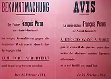François Péron, marin-pêcheur de Saint-Guénolé, fut condamné à mort pour violences et voies de fait contre des militaires allemands et fusillé le au château de Kériolet en Beuzec-Conq[37].