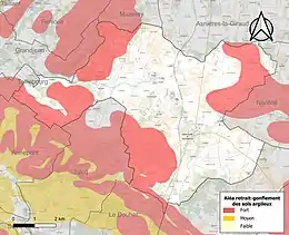 Le retrait-gonflement des sols argileux est susceptible d'engendrer des dommages importants aux bâtiments en cas d’alternance de périodes de sécheresse et de pluie. 34,9 % de la superficie communale est en aléa moyen ou fort (54,2 % au niveau départemental et 48,5 % au niveau national). Sur les 730 bâtiments dénombrés sur la commune en 2019, 117 sont en aléa moyen ou fort, soit 16 %, à comparer aux 57 % au niveau départemental et 54 % au niveau national. Une cartographie de l'exposition du territoire national au retrait gonflement des sols argileux est disponible sur le site du BRGM[14],[15].