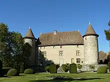 Le château de Cuirieu, datant des XVIIe et XVIIIe siècles, est situé dans le hameau de Bas-Cuirieu. L'édifice est inscrit au titre des monuments historiques par arrêté du 22 janvier 1955, avec ses communs et son jardin à la française[27]. ce château n'est pas ouvert aux visites mais il peut être ouvert à l'occasion des journées du patrimoine.