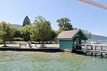 On peut aussi se rendre à Annecy par bateau depuis l'embarcadère de Saint-Jorioz, grâce à l'une des trois liaisons journalières proposées par la Compagnie des bateaux du lac d'Annecy.