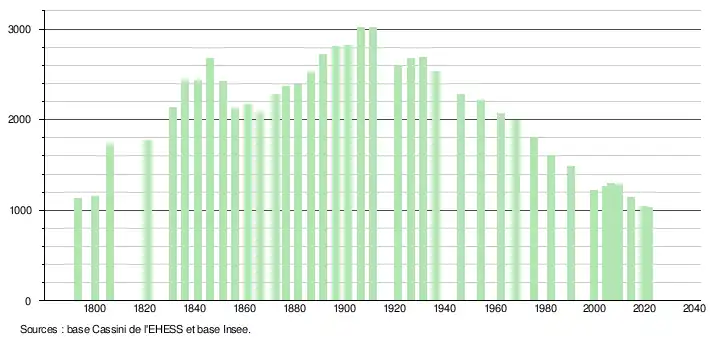 1 027 hab. (2021 en diminution de 9,6 % par rapport à 2015)