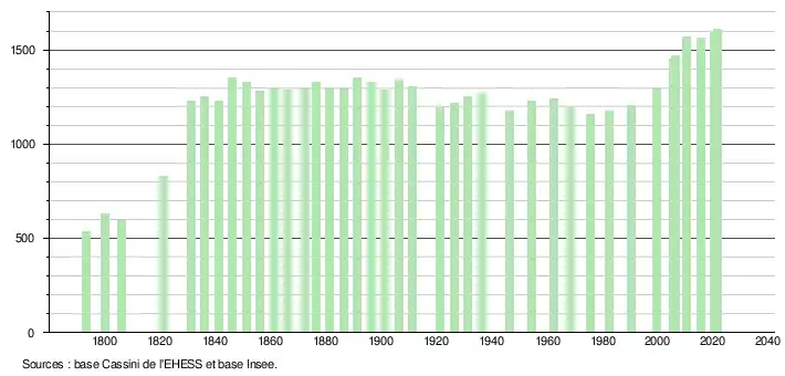 1 607 hab. (2021 en augmentation de 2,88 % par rapport à 2015)
