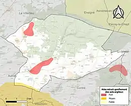 Le retrait-gonflement des sols argileux est susceptible d'engendrer des dommages importants aux bâtiments en cas d’alternance de périodes de sécheresse et de pluie. 5,2 % de la superficie communale est en aléa moyen ou fort (54,2 % au niveau départemental et 48,5 % au niveau national). Sur les 204 bâtiments dénombrés sur la commune en 2019, 62 sont en aléa moyen ou fort, soit 30 %, à comparer aux 57 % au niveau départemental et 54 % au niveau national. Une cartographie de l'exposition du territoire national au retrait gonflement des sols argileux est disponible sur le site du BRGM[16],[Carte 2].
