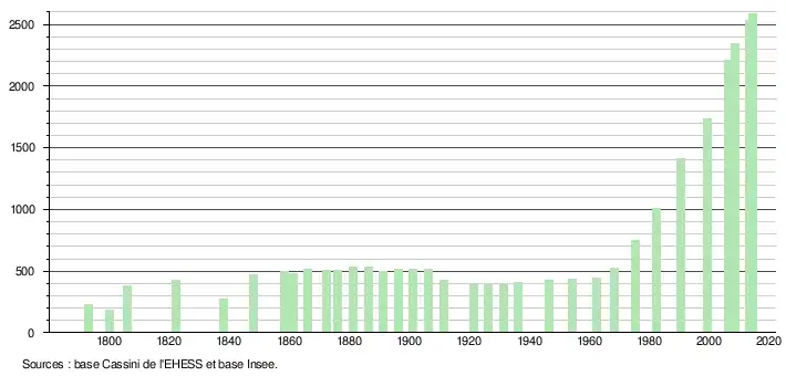 - Population municipale légale en vigueur au 1er janvier 2017, millésimée 2014, définie dans les limites territoriales en vigueur au 1er janvier 2016, date de référence statistique : 1er janvier 2014.