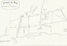 - La Croix Pèlerine[17]50° 45′ 30″ N, 2° 13′ 50″ E: Erigée à l'occasion du pas d'armes de la belle Pélerine de 1449, organisé et gagné par Jean de Luxembourg. Le nom de "Belle pélerine" provient de l'histoire imaginée pour justifier le pas d'arme : Jean aurait sauvé des griffes de brigands une "Belle pélerine", sur la route de Rome, montrant ainsi sa force, et défiait les meilleurs chevaliers de son temps[18]. La croix a fait ensuite partie des dépendances d'un manoir dit de "la Rouge-Clef" qui jouxtait le château du Long Jardin (voir croquis)[18].