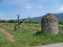 On nomme ainsi en Provence une cabane de pierre sèche. Le terme de borie est issu du latin boria - déjà référencé dans le quartier Borianum d'Arles - et s'orthographie bori en provençal. Elle est aussi dénommée cabanon pointu dans les Alpes provençales (région de Forcalquier). Ce type de construction réalisé uniquement en pierres sèches, permettait au paysan de stocker (serrer en provençal) ses instruments agraires, protéger sa récolte ou plus spécifiquement sa réserve d'eau et, au besoin, d'y passer la nuit. La borie était donc une annexe de l'habitat permanent[48]. Ce type de construction en pierre sèche est facilité par l'épierrage des champs. En Provence, il est courant dans les régions montueuses, de plateaux secs, des coteaux travaillés en restanques[49].