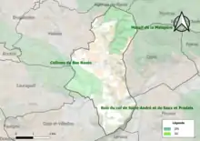 L’inventaire des zones naturelles d'intérêt écologique, faunistique et floristique (ZNIEFF) a pour objectif de réaliser une couverture des zones les plus intéressantes sur le plan écologique, essentiellement dans la perspective d’améliorer la connaissance du patrimoine naturel national et de fournir aux différents décideurs un outil d’aide à la prise en compte de l’environnement dans l’aménagement du territoire. Deux ZNIEFF de type 1[Note 2] sont recensées sur la commune[16] : les « collines du Bas Razès » (3 551 ha), couvrant 13 communes du département[17], et le « massif de la Malepère » (5 883 ha), couvrant 14 communes du département[18].