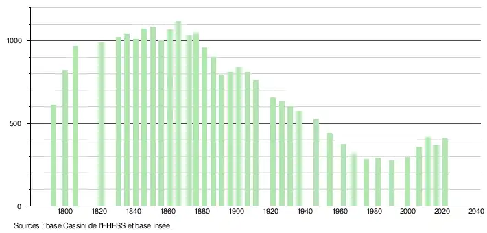 - Fiches Insee - Populations légales de la commune pour les années 2006, 2007, 2008, 2009, 2010, 2011, 2012, 2013, 2014, 2015, 2016, 2017, 2018, 2019, 2020 et 2021.