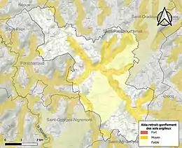 Le retrait-gonflement des sols argileux est susceptible d'engendrer des dommages importants aux bâtiments en cas d’alternance de périodes de sécheresse et de pluie. 29,1 % de la superficie communale est en aléa moyen ou fort (33,6 % au niveau départemental et 48,5 % au niveau national). Sur les 124 bâtiments dénombrés sur la commune en 2019, 31 sont en aléa moyen ou fort, soit 25 %, à comparer aux 25 % au niveau départemental et 54 % au niveau national. Une cartographie de l'exposition du territoire national au retrait gonflement des sols argileux est disponible sur le site du BRGM[17],[Carte 2].