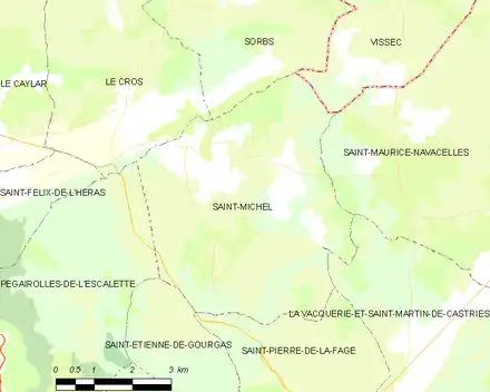Saint-Michel est une commune rurale qui compte 58 habitants en 2021, après avoir connu un pic de population de 368 habitants en 1831. Elle fait partie de l'aire d'attraction de Lodève.