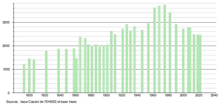 2 469 hab. (2021 en diminution de 0,12 % par rapport à 2015)