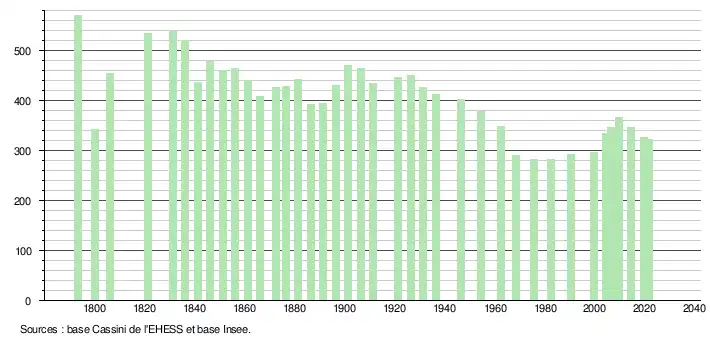 - Fiches Insee - Populations légales de la commune pour les années 2006, 2007, 2008, 2009, 2010, 2011, 2012, 2013, 2014, 2015, 2016, 2017, 2018, 2019, 2020 et 2021.
