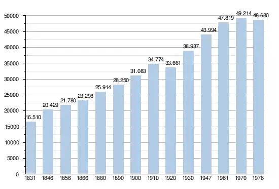 - Source : DGS - Remarque: 1831 jusqu'à 1981=recensement; depuis 1990=nombre d'habitants chaque 1er janvier[6]