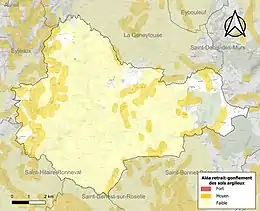 Le retrait-gonflement des sols argileux est susceptible d'engendrer des dommages importants aux bâtiments en cas d’alternance de périodes de sécheresse et de pluie[17]. 21 % de la superficie communale est en aléa moyen ou fort (27 % au niveau départemental et 48,5 % au niveau national métropolitain)[Carte 2]. Depuis le , en application de la loi ÉLAN, différentes contraintes s'imposent aux vendeurs, maîtres d'ouvrages ou constructeurs de biens situés dans une zone classée en aléa moyen ou fort[Note 3],[18].